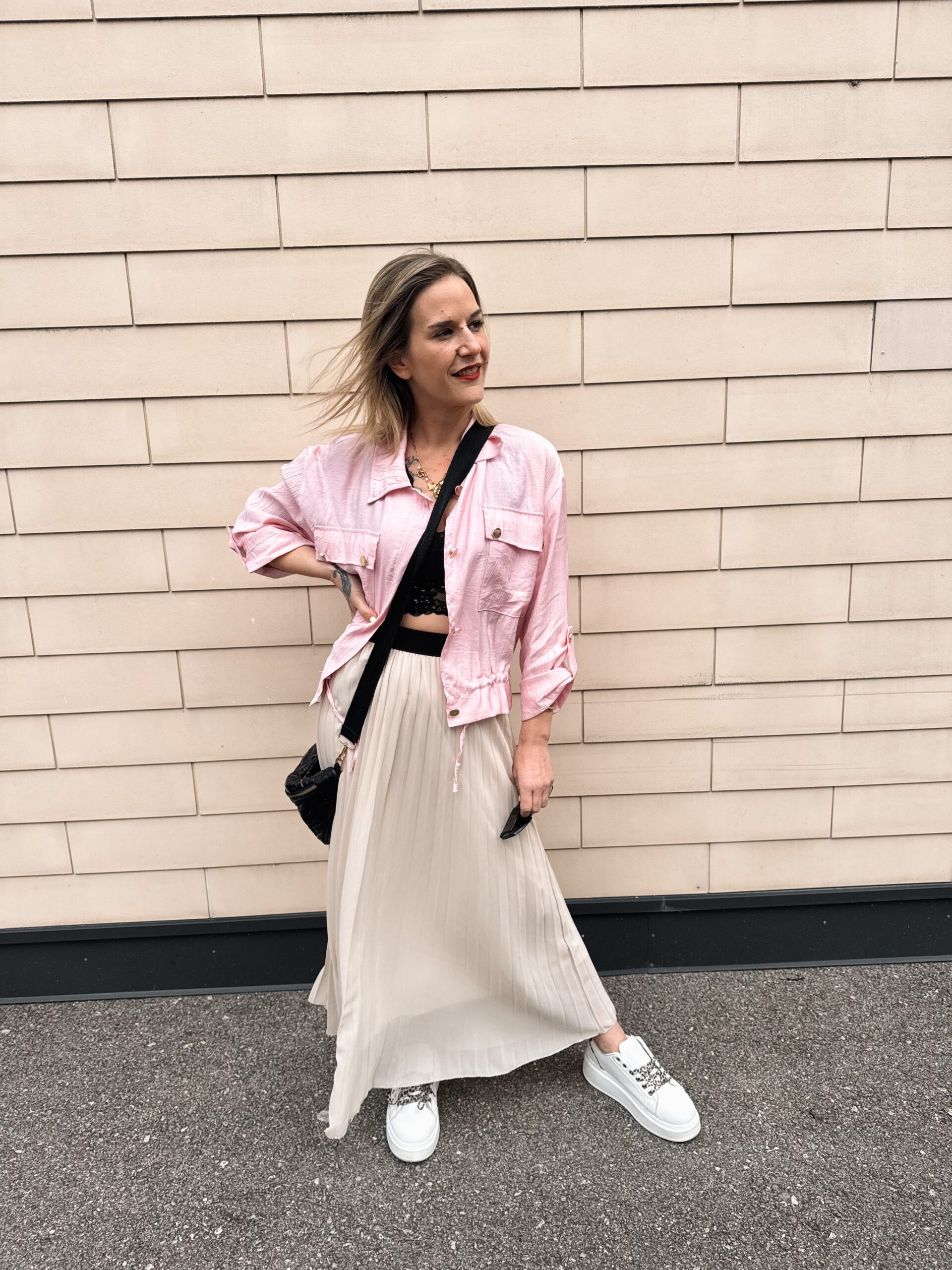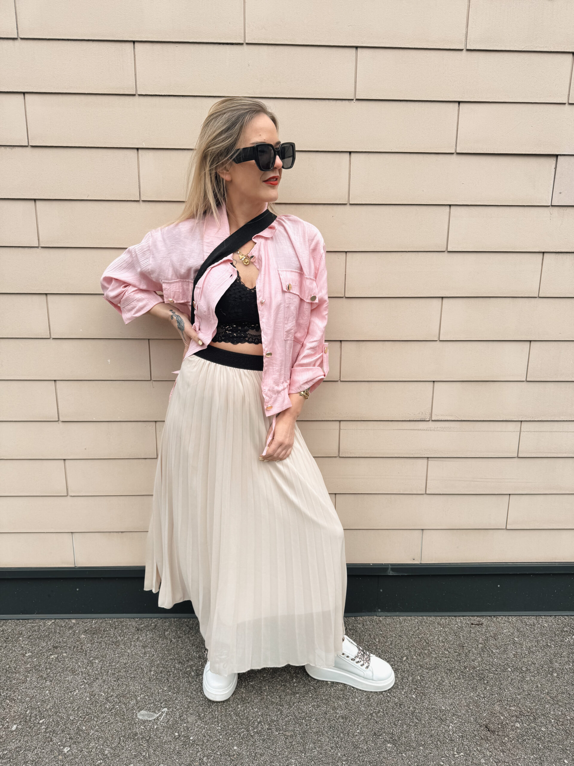 NS 08 – Plissierter Chiffonrock Beige, Hellblau, Rosa