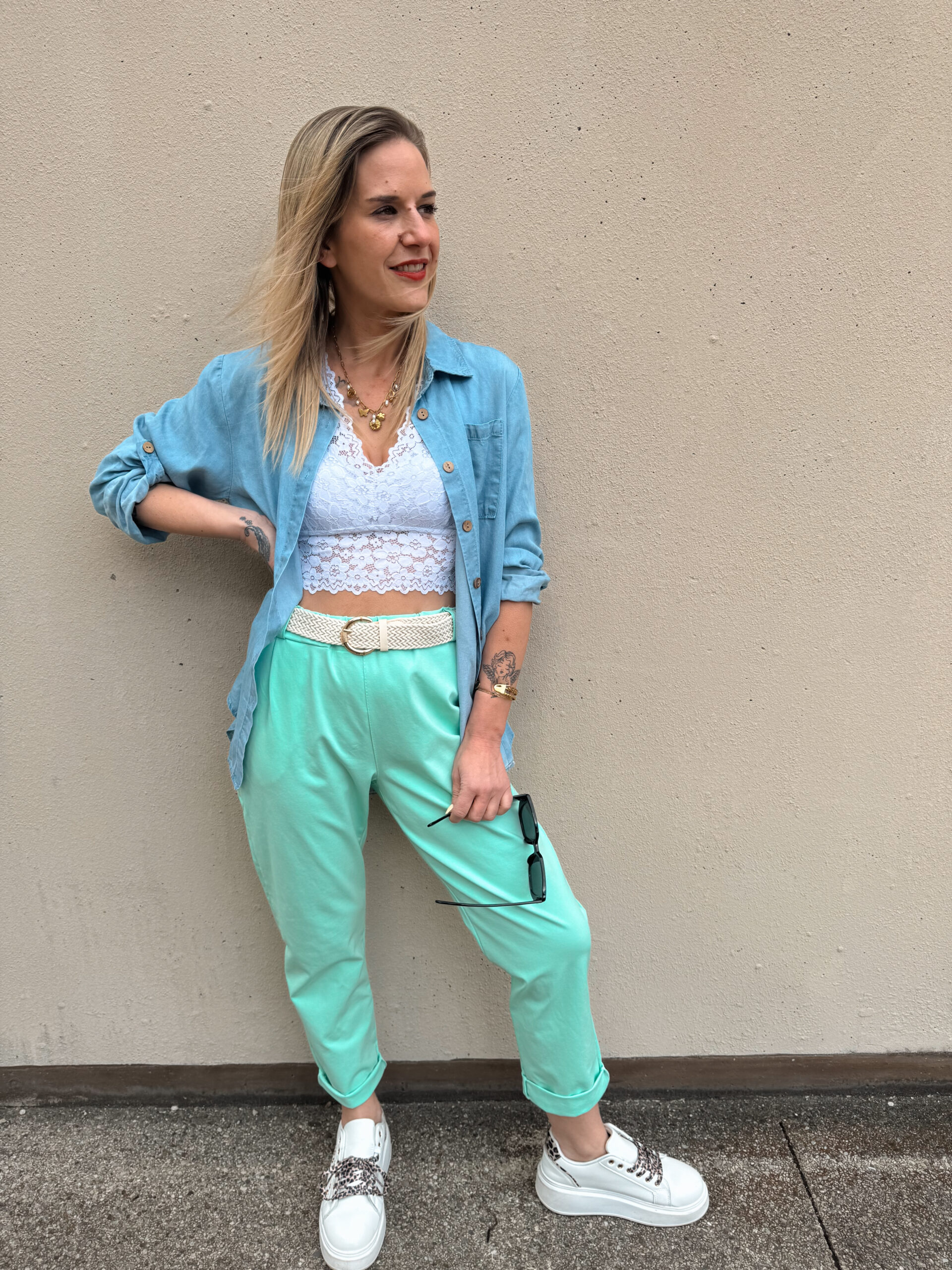 CB 02 – Soft Fit Hose mit Gürtel Mint, Rosa, Hellblau