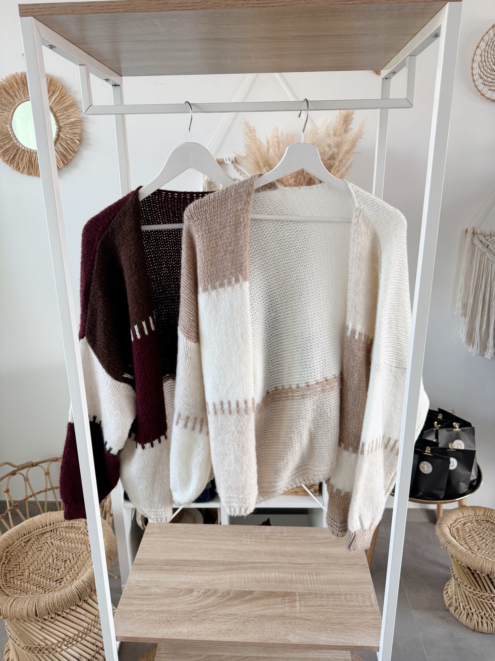Das moderne Farbblock-Muster verleiht jedem Outfit einen edlen, trendigen Look – ideal für gemütliche Tage oder elegante Casual-Styles.
