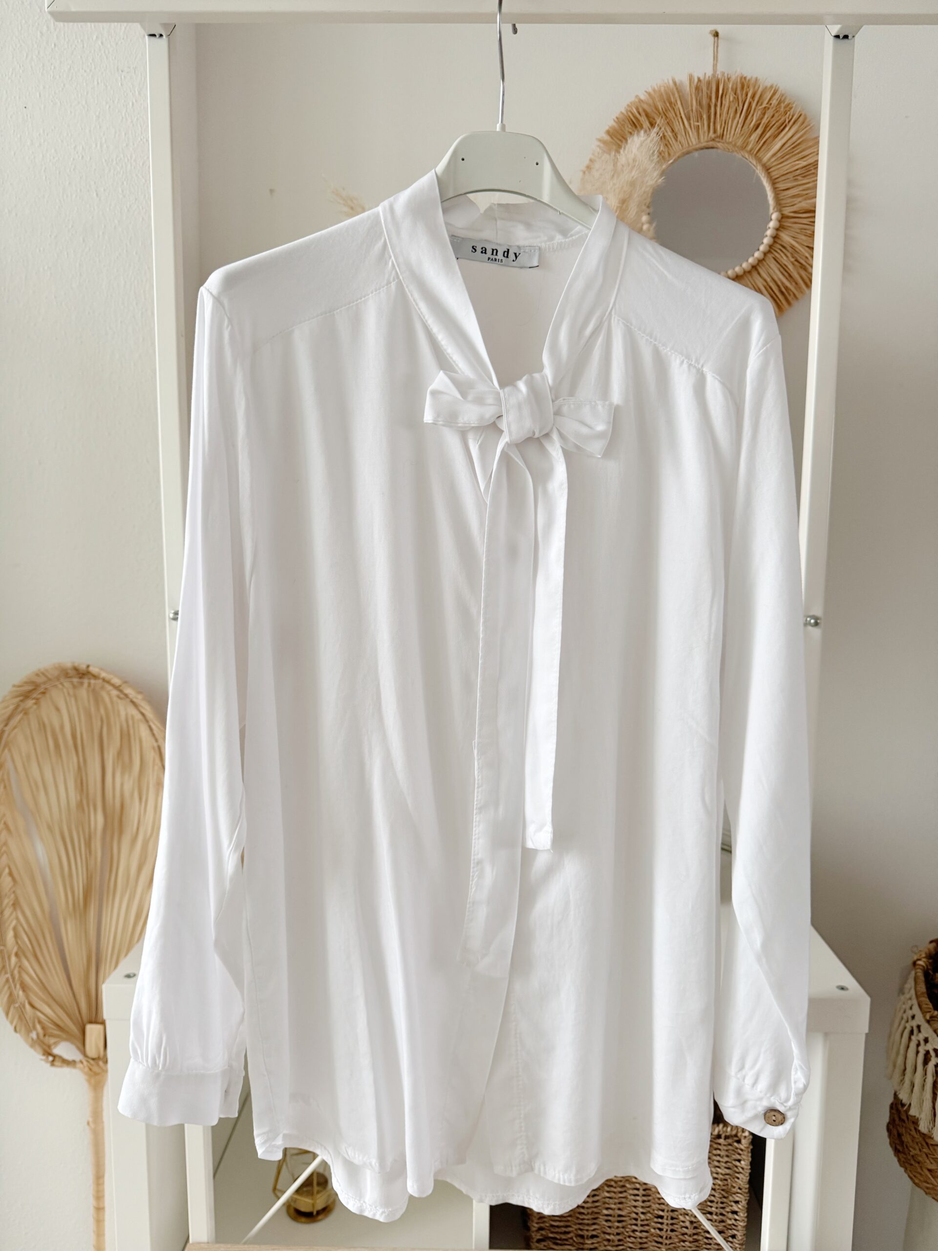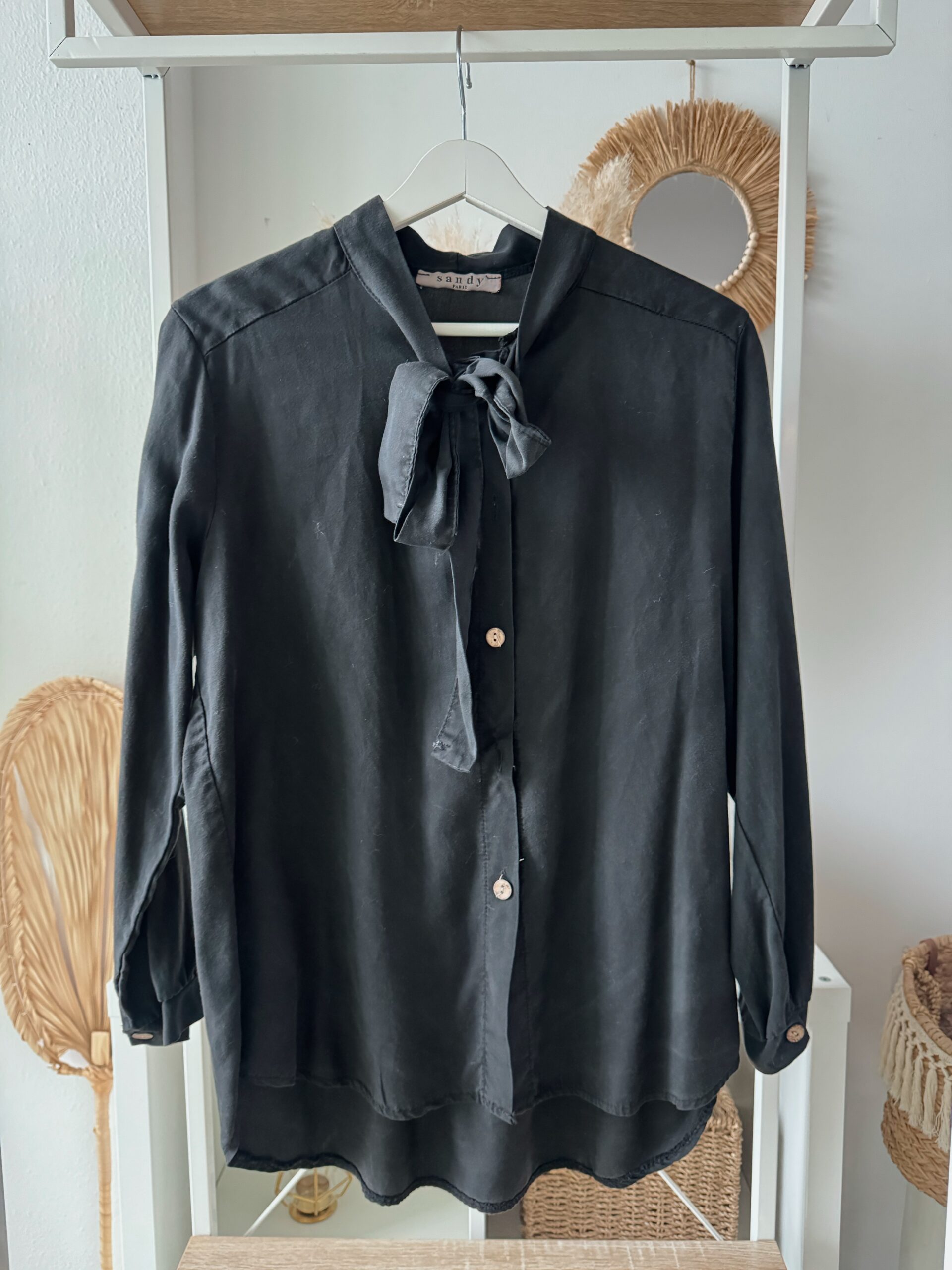 Diese elegante Bluse überzeugt durch ihr feminines Schleifen-Detail am Ausschnitt und ihre fließende, hochwertige Qualität. Der lockere Schnitt sorgt für einen angenehmen Sitz und macht sie sowohl bürotauglich als auch ideal für stilvolle Alltags- oder Abendlooks. Ein zeitloses Basic mit besonderem Akzent.