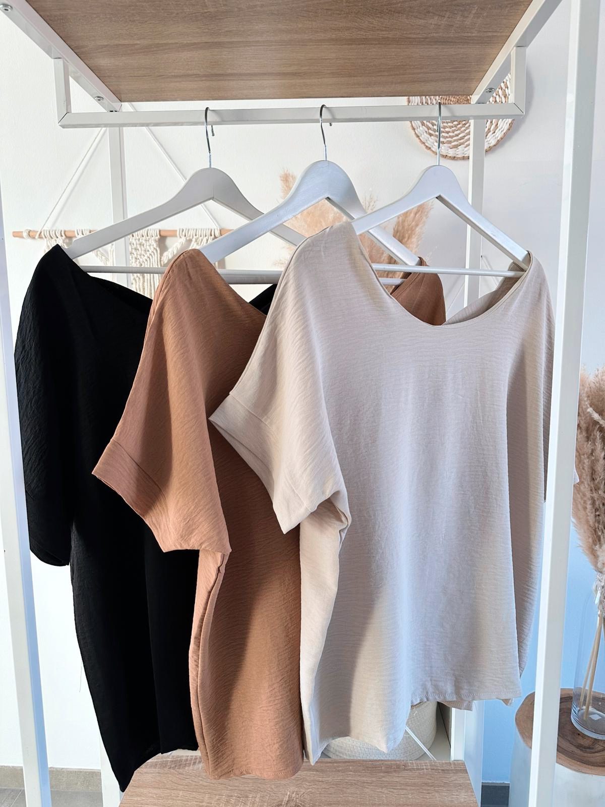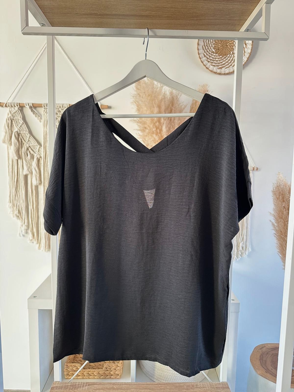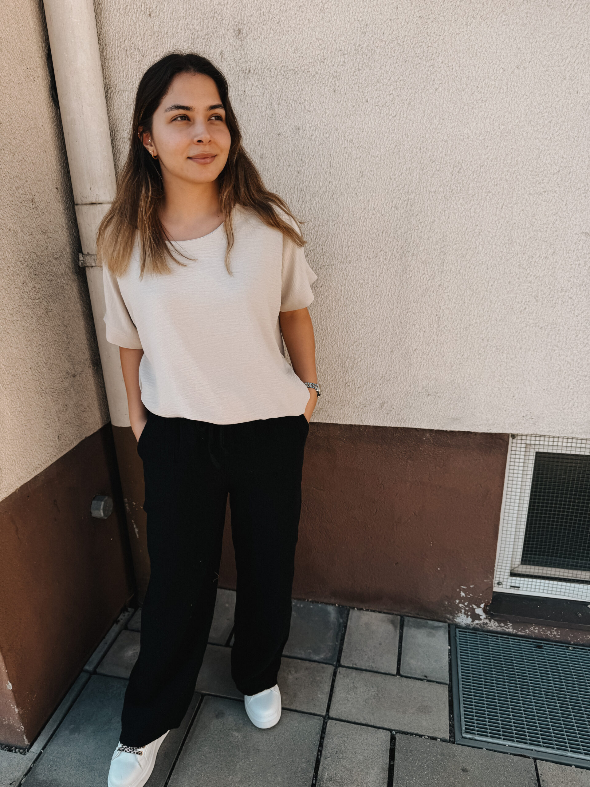 Die Bluse überzeugt mit ihrem fließenden Fall und dem eleganten Rückenausschnitt – perfekt für feminine Alltagslooks.