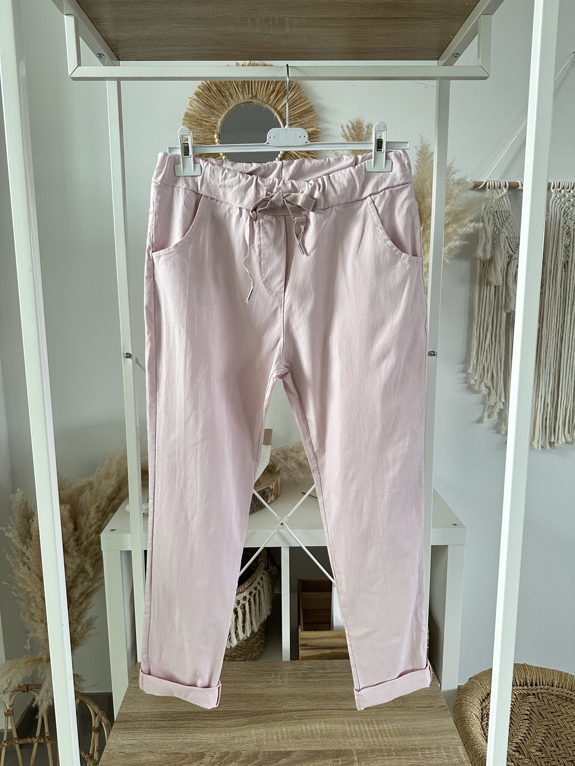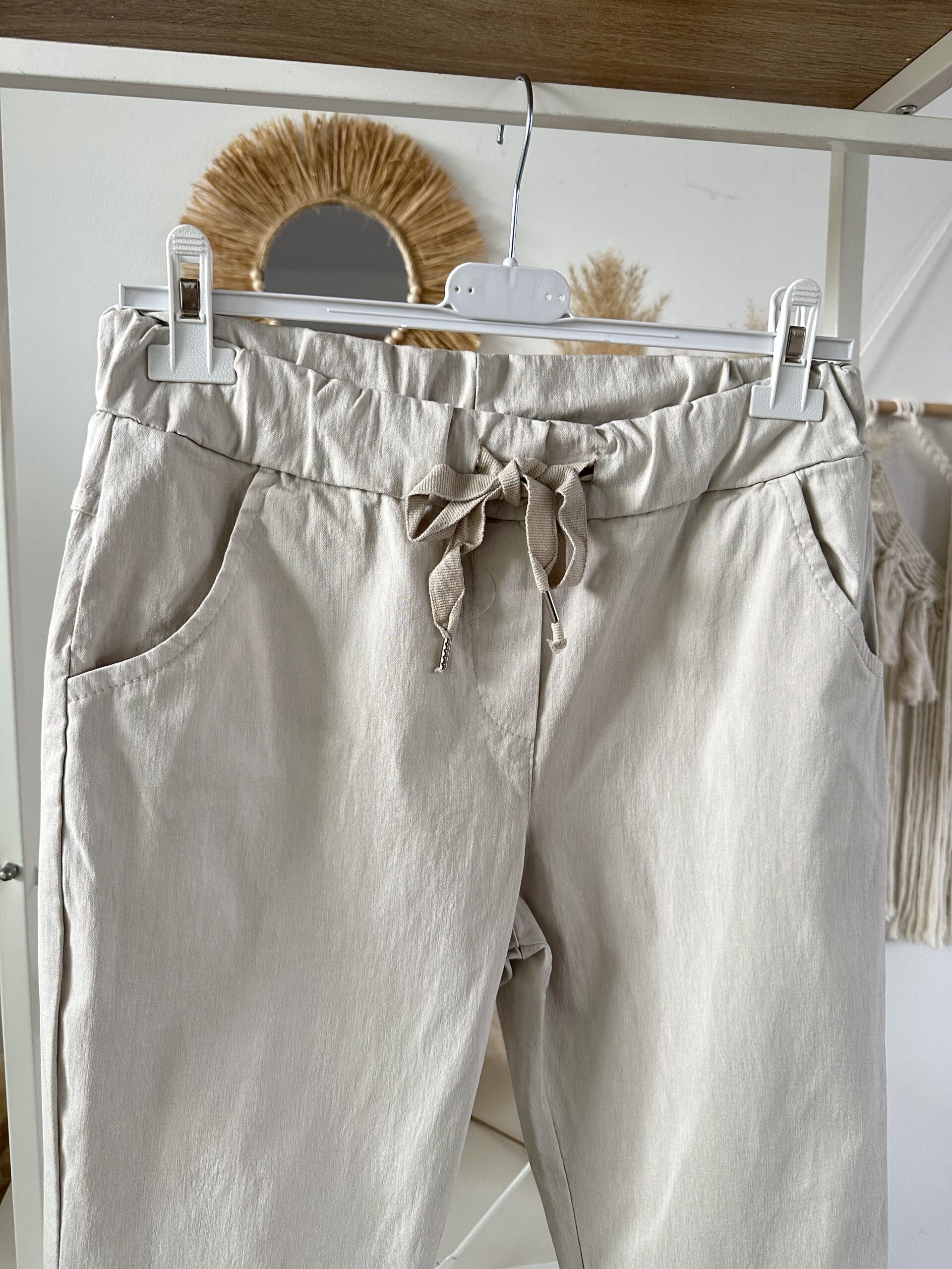Mit ihrem elastischen Bund und dem lockeren Fit ist sie dein Go-to Piece für unkomplizierte Outfits.
