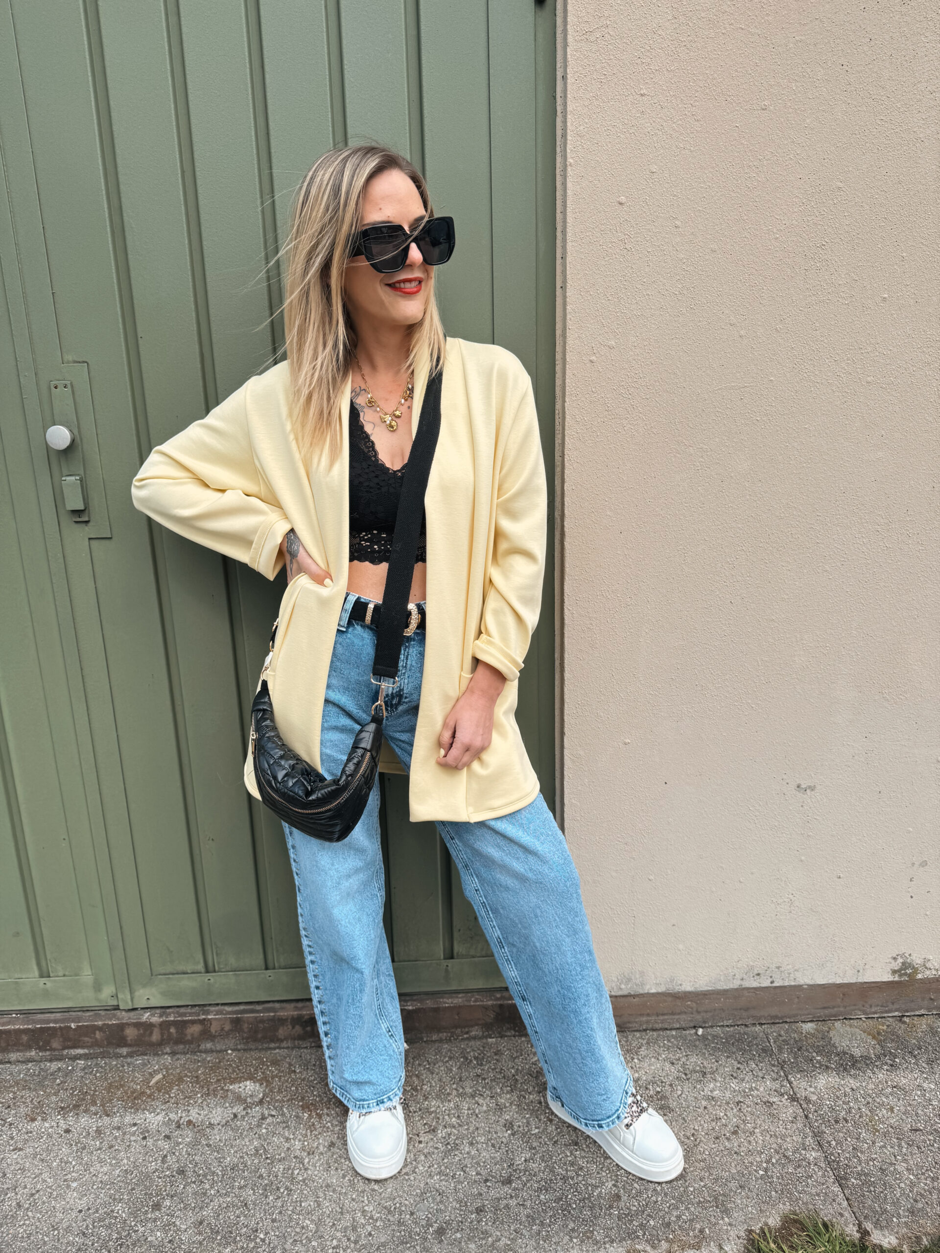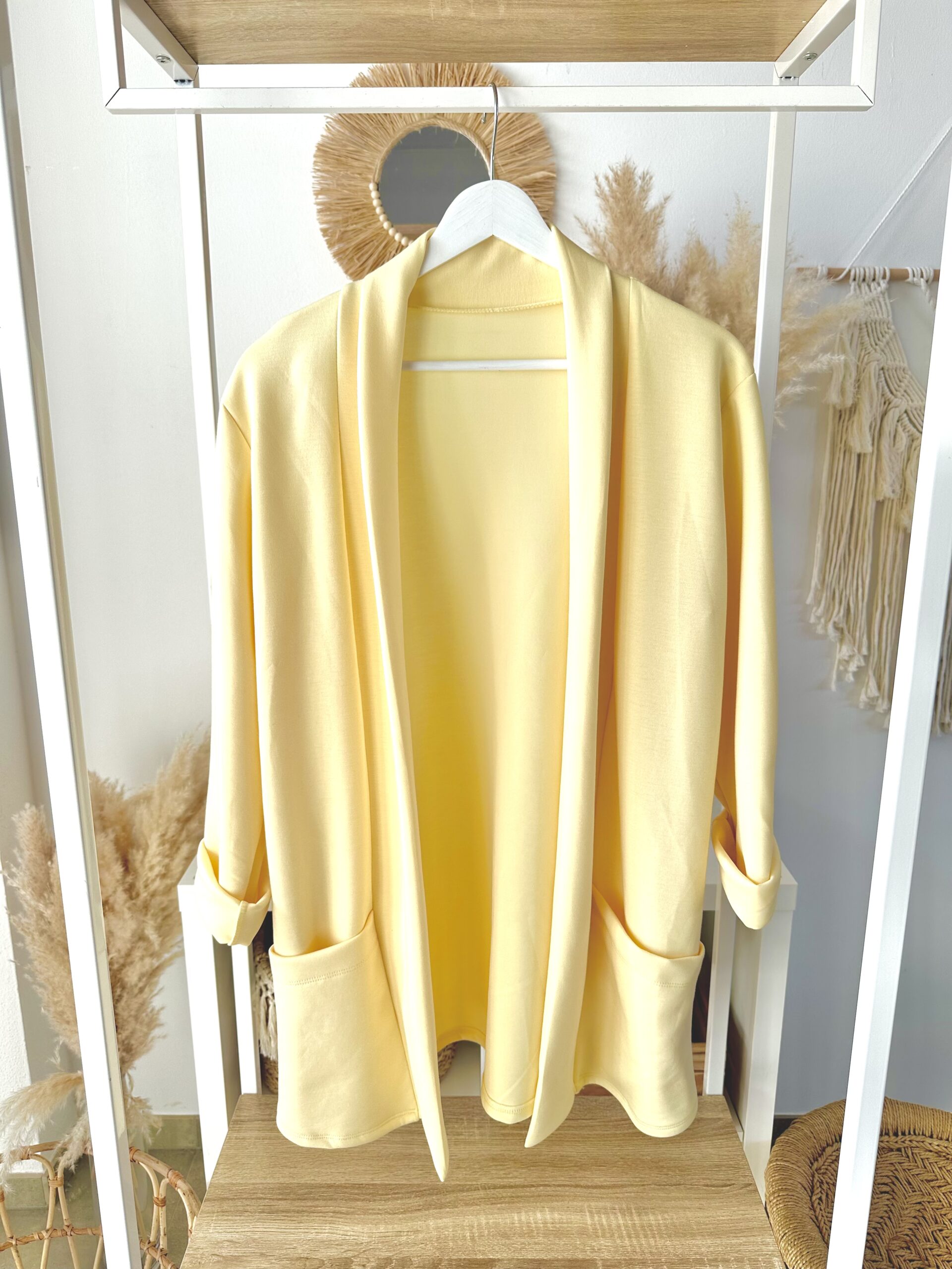 Diese offene Jacke bringt Struktur in deinen Look, ohne schwer zu wirken, und ist ideal für entspannte Layering-Outfits.