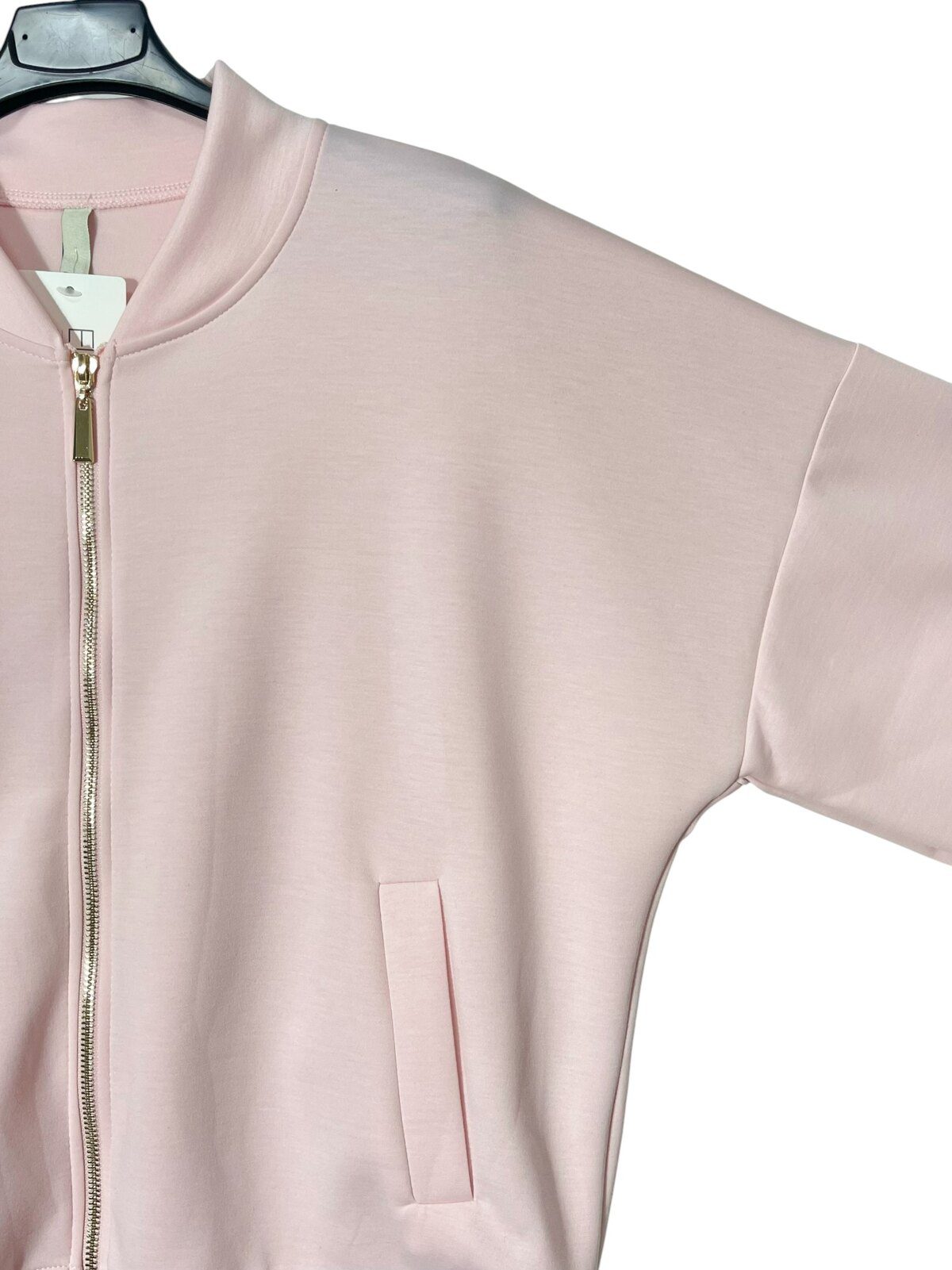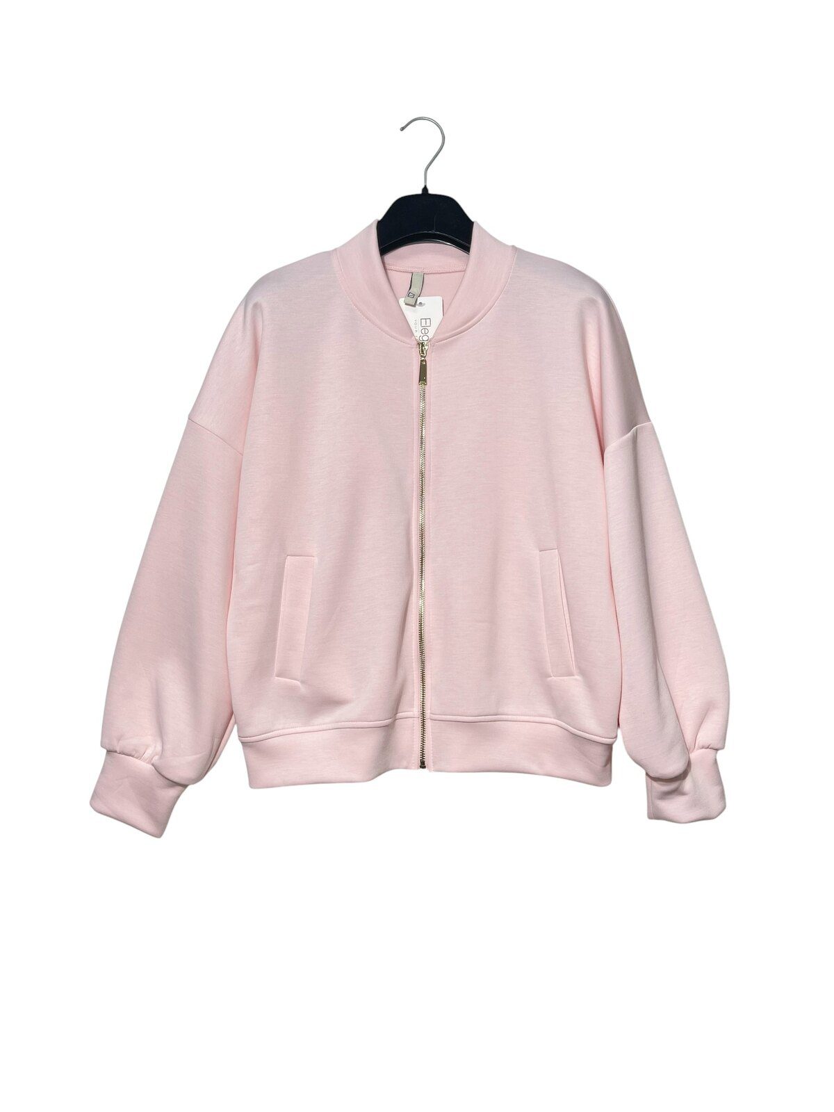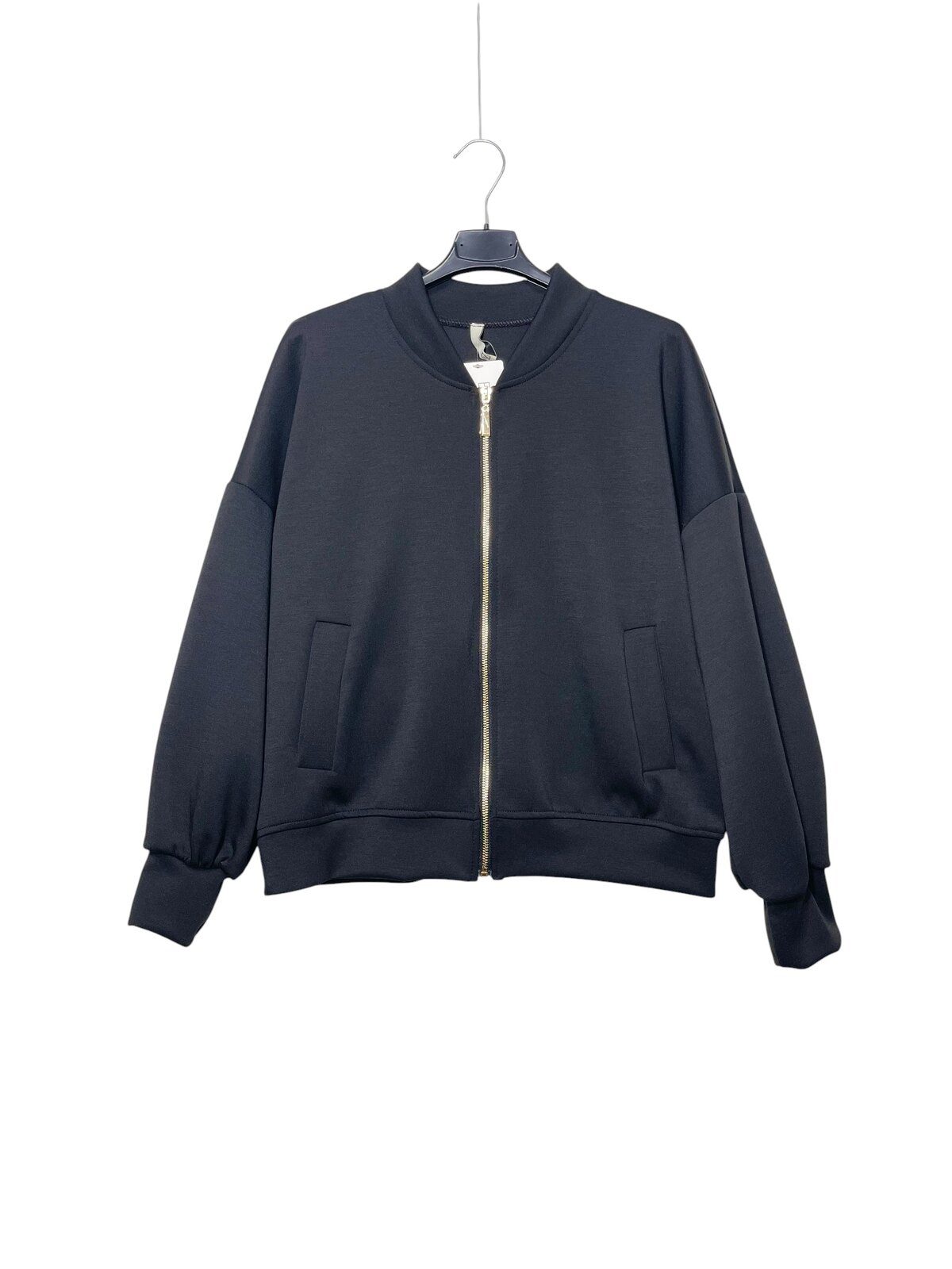 Der goldfarbene Reißverschluss setzt einen edlen Akzent, während der lockere Schnitt für maximalen Komfort sorgt. Ob offen getragen oder geschlossen – sie wirkt immer modern und effortless.