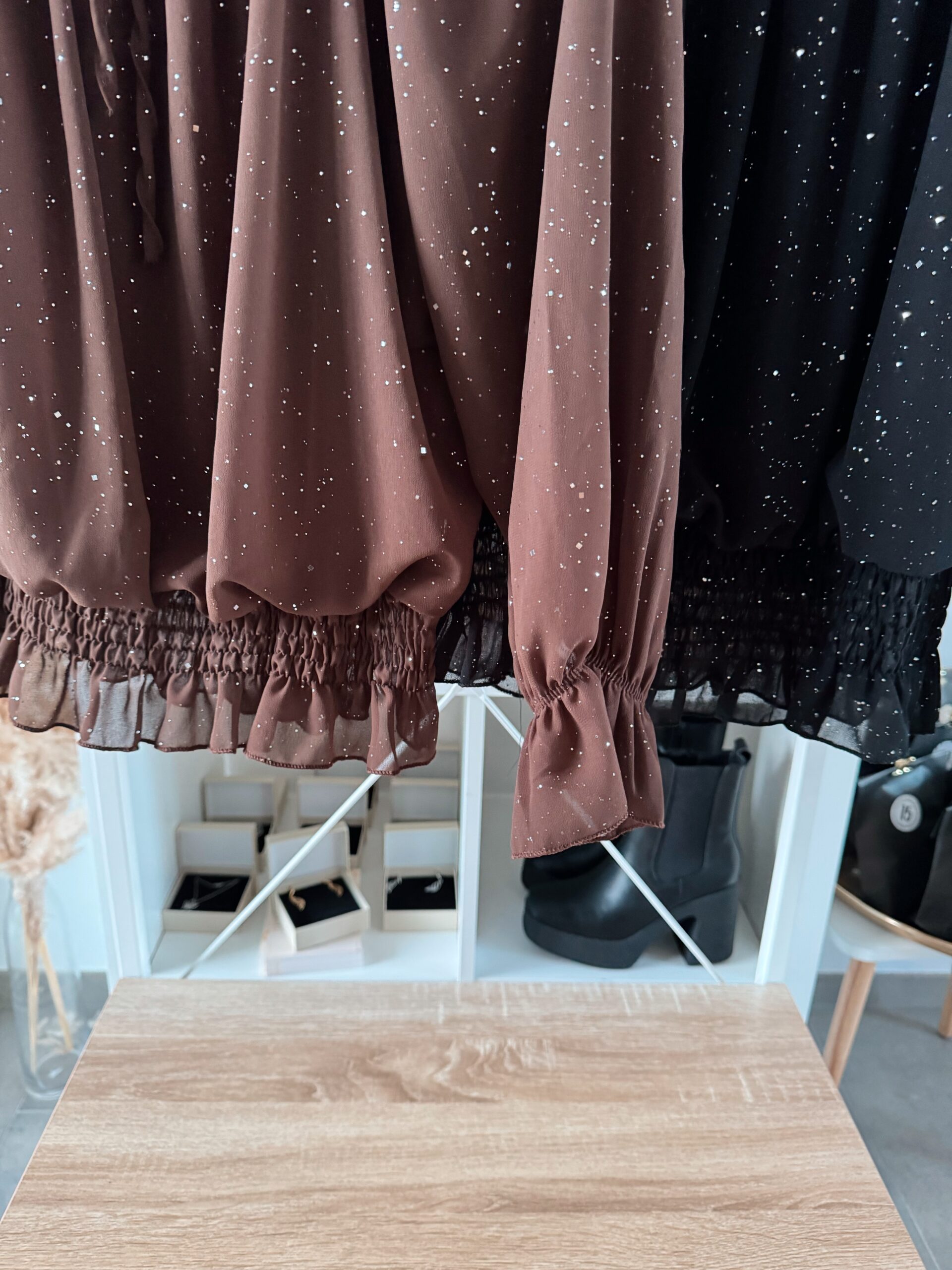 Erhältlich in Schwarz, Braun und Weinrot – drei elegante Farben, die jedem Outfit sofort Glamour verleihen. ✨🖤🤎🍷