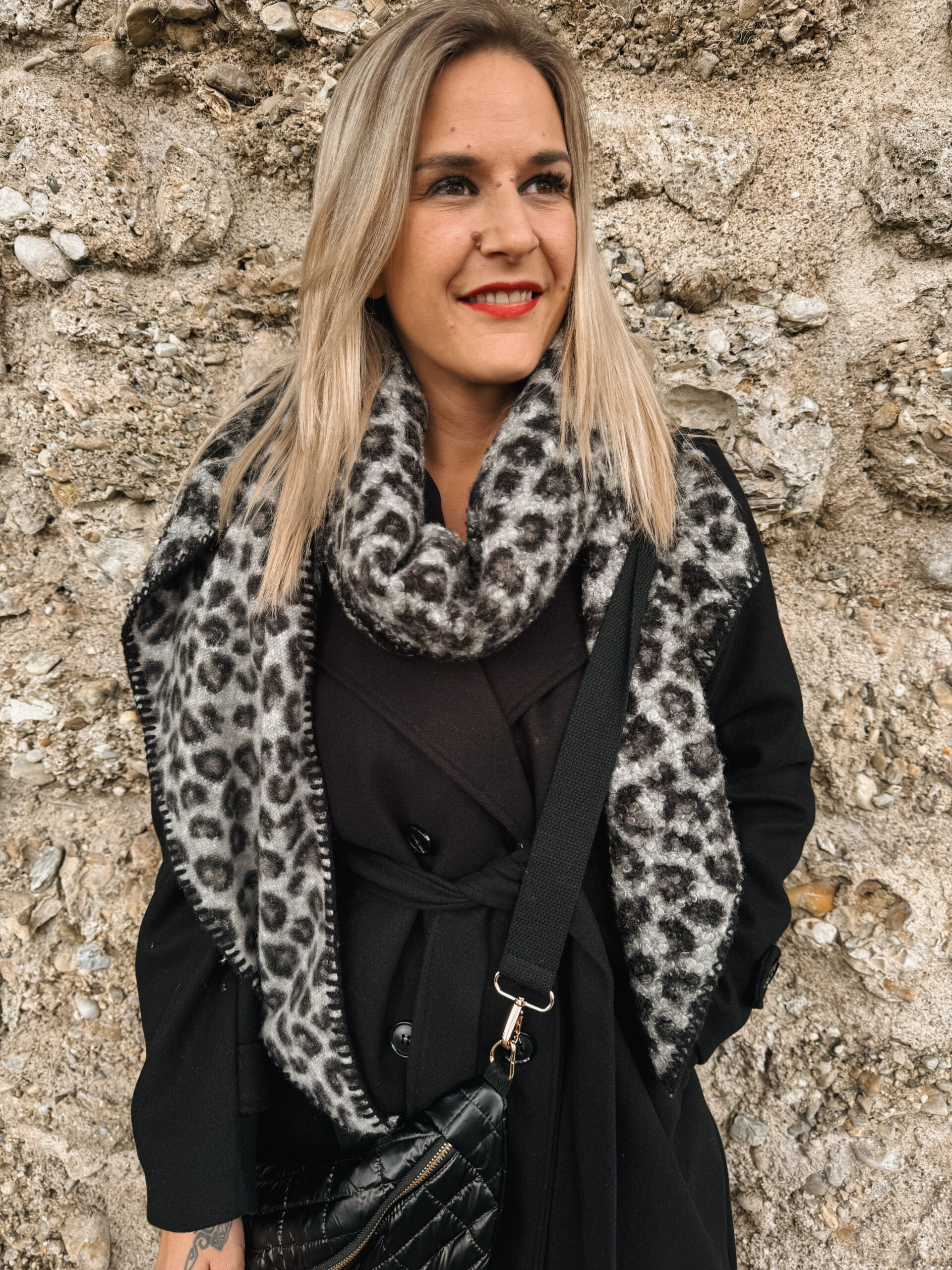 Ein Schal, zwei Looks ✨ – dieser Wende-Schal mit Leo-Muster ist das absolute Must-Have für den Herbst & Winter. Superweich, warm und vielseitig tragbar – ob zu deinem Mantel, zur Lederjacke oder ganz casual mit Strick & Jeans.