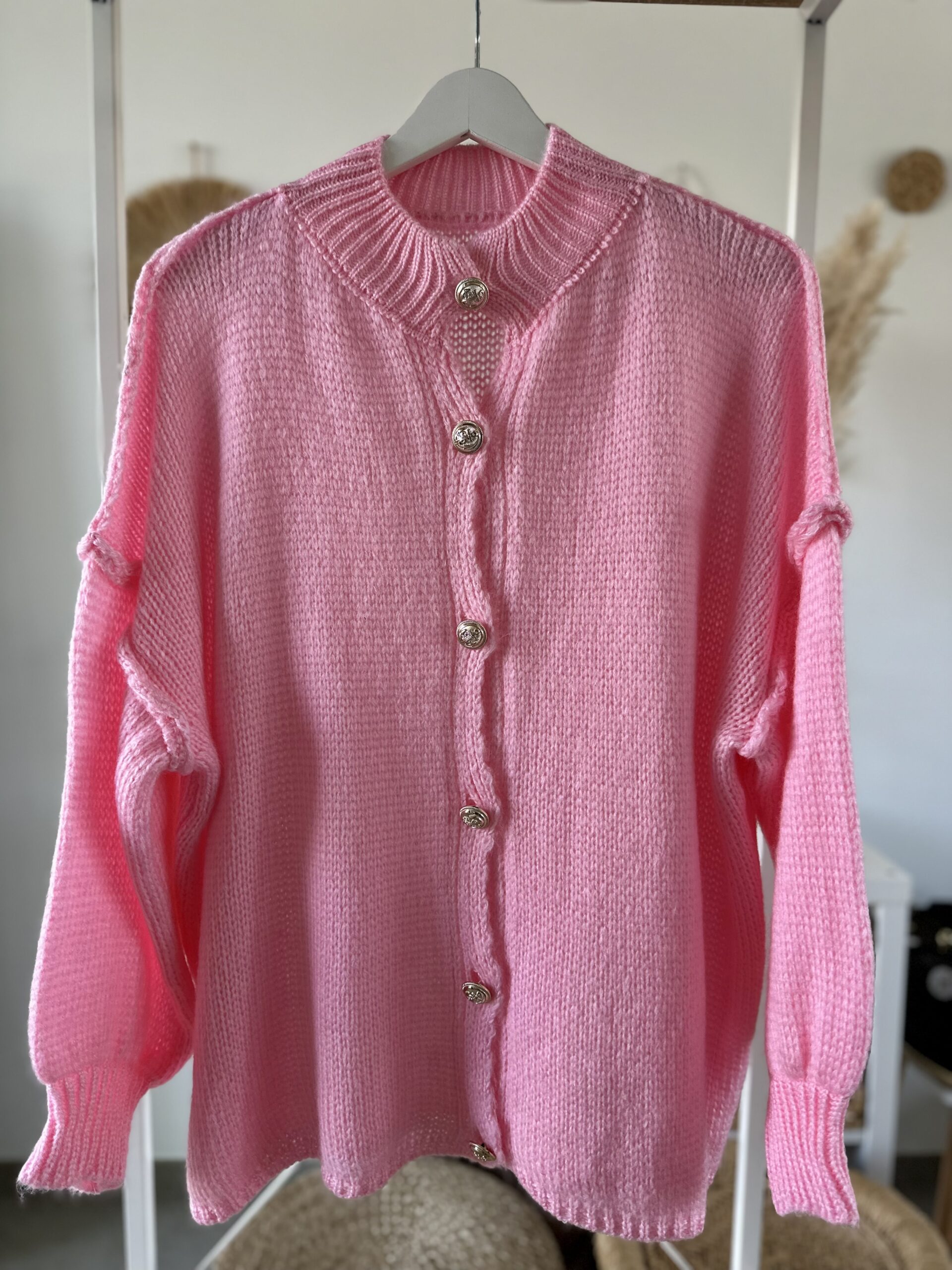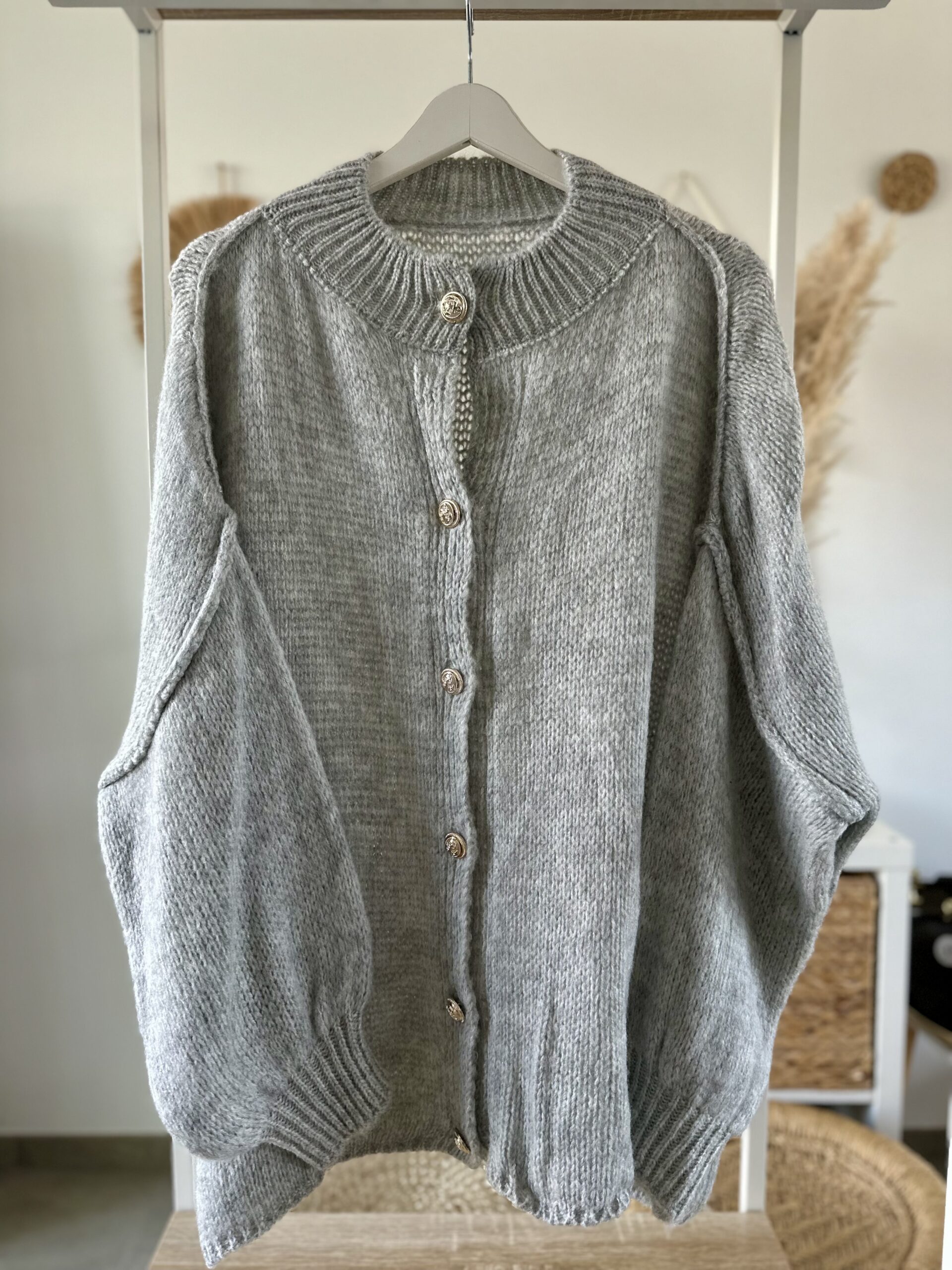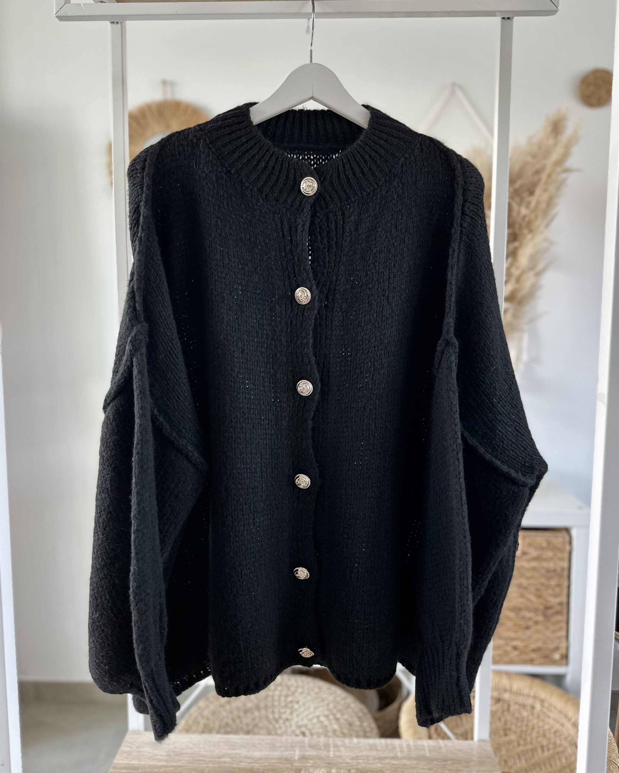Kuschelig weich, stilvoll und mit einem Hauch Eleganz – diese Strickjacke ist das perfekte Lieblingsstück für kühle Tage.