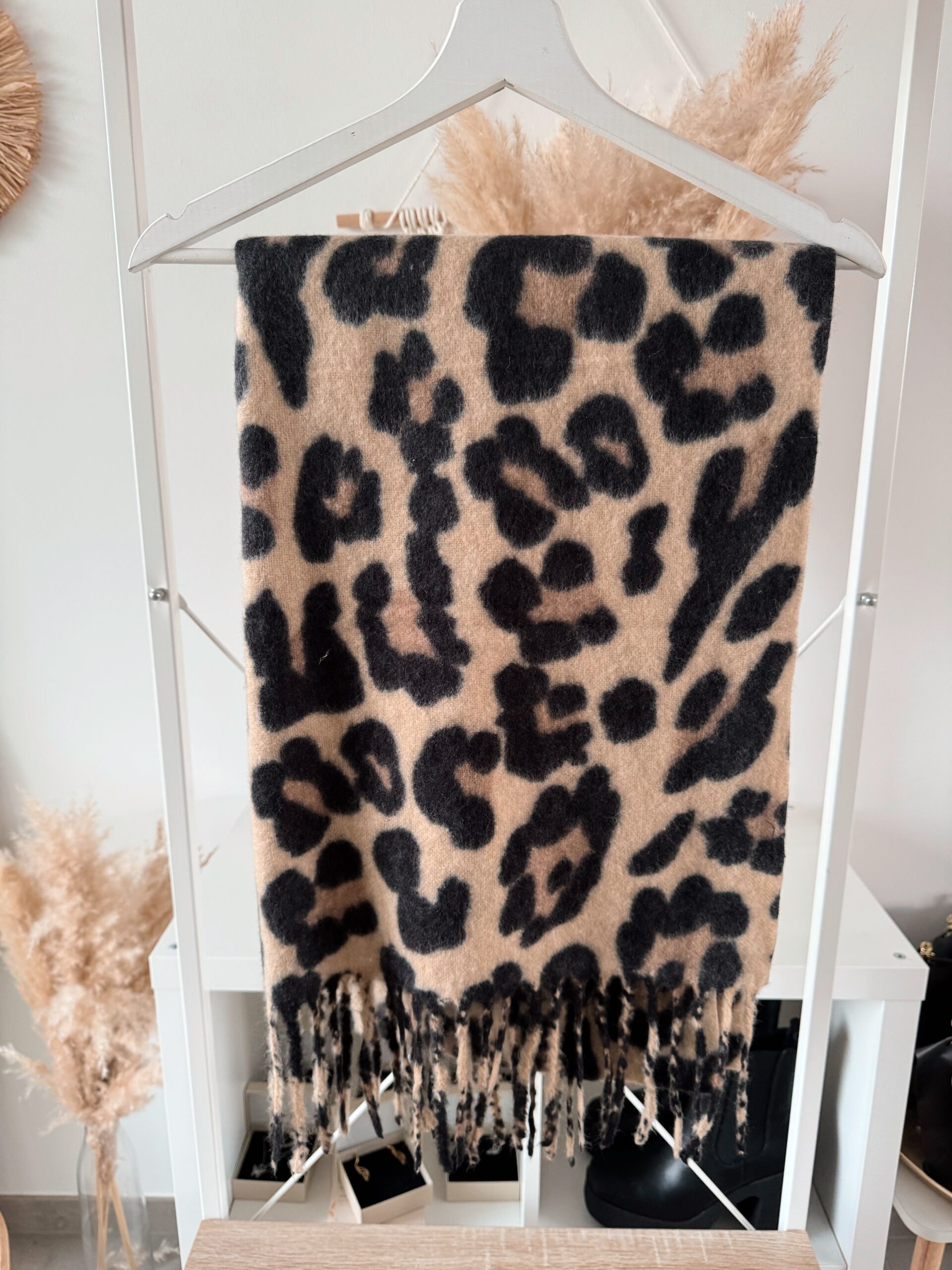Dieser superweiche Leo-Schal kombiniert einen modernen Animal-Print mit kuscheliger Wärme – perfekt für alle, die es stylish und gemütlich mögen.