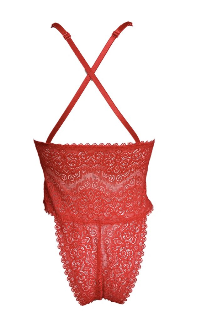 Besonders hoch ausgeschnittener Spitzen-Body im Tanga-Schnitt