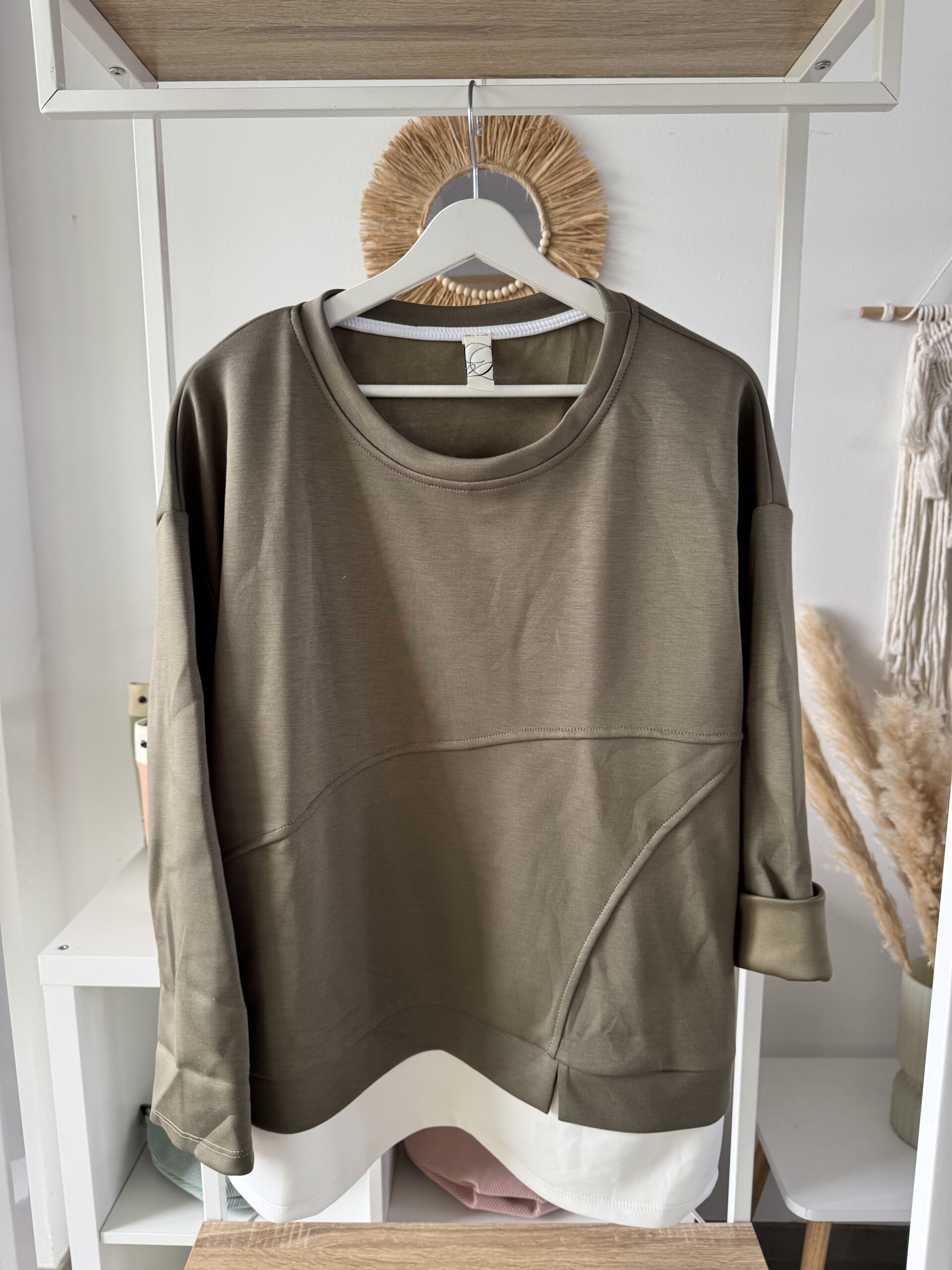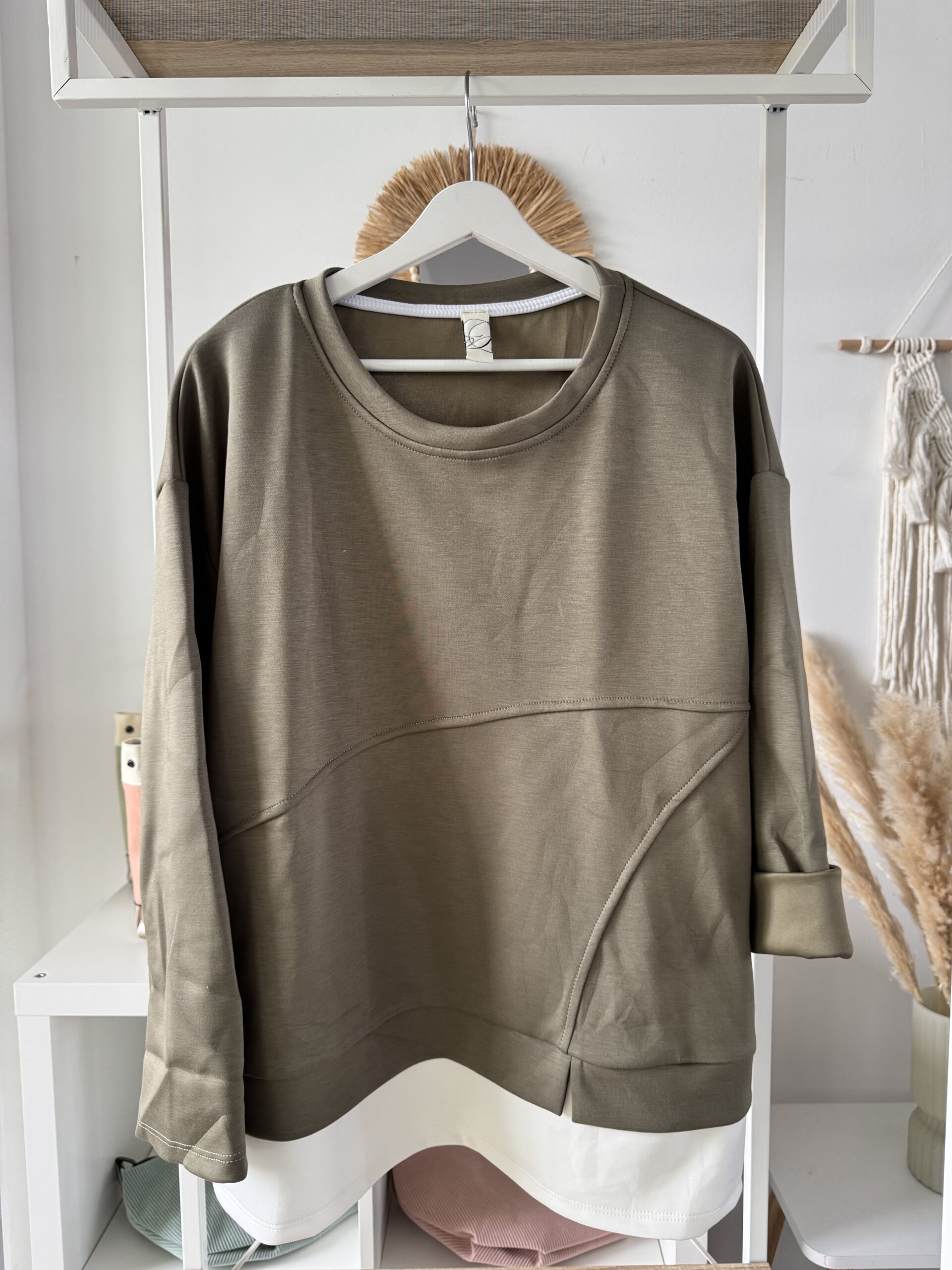 ✨ Layered Look Sweater – One Size (Schwarz, Beige, Khaki)
