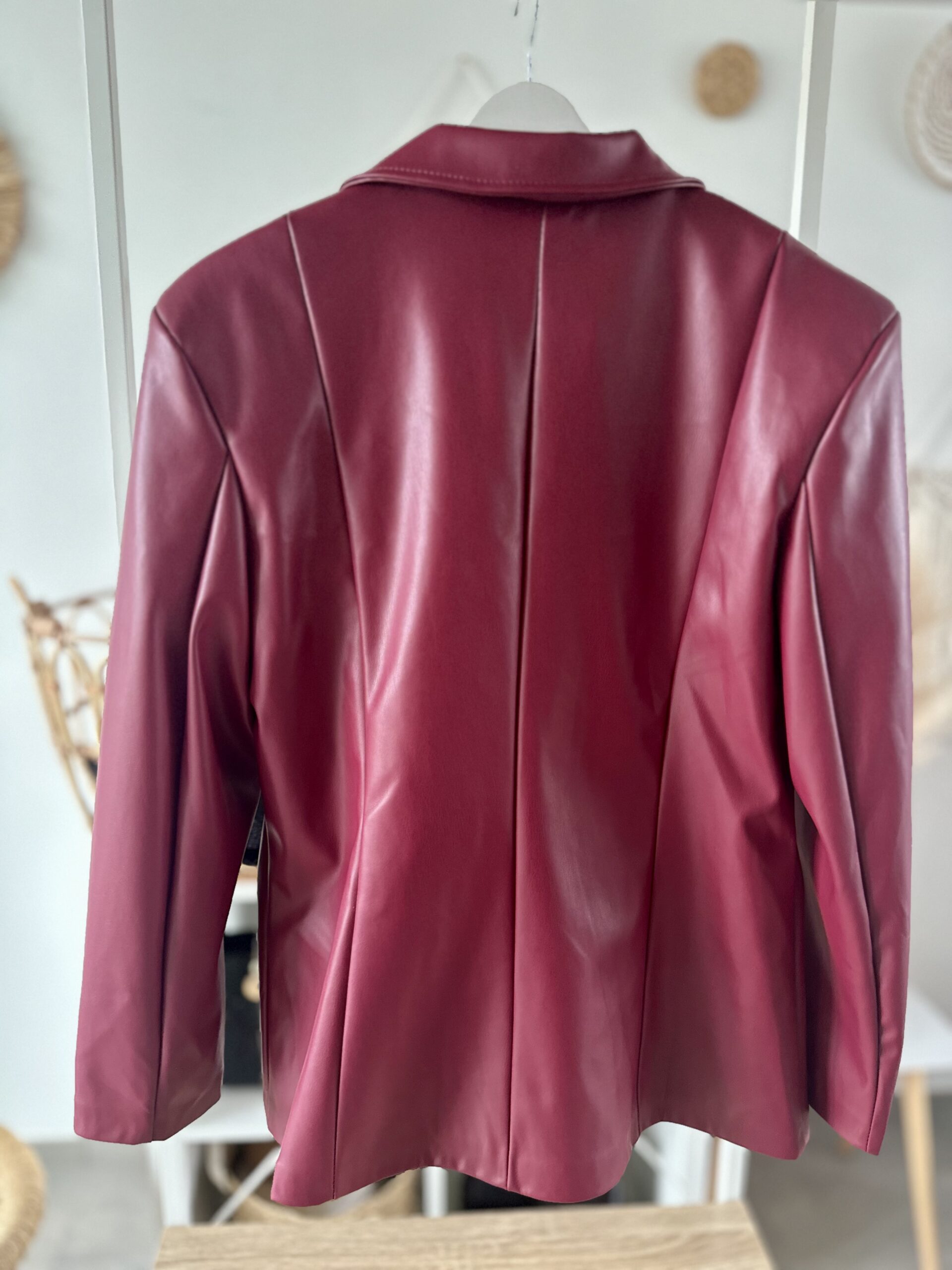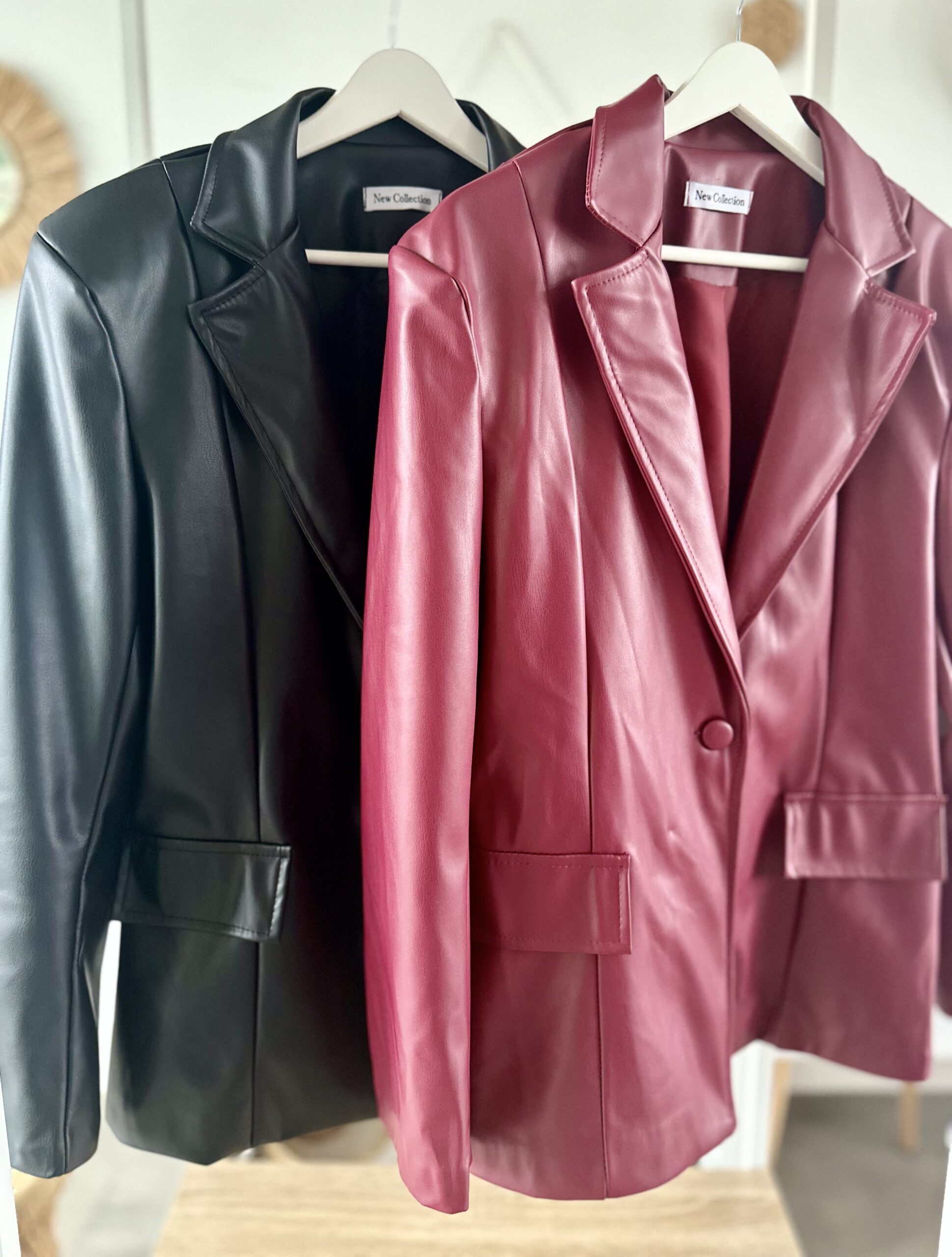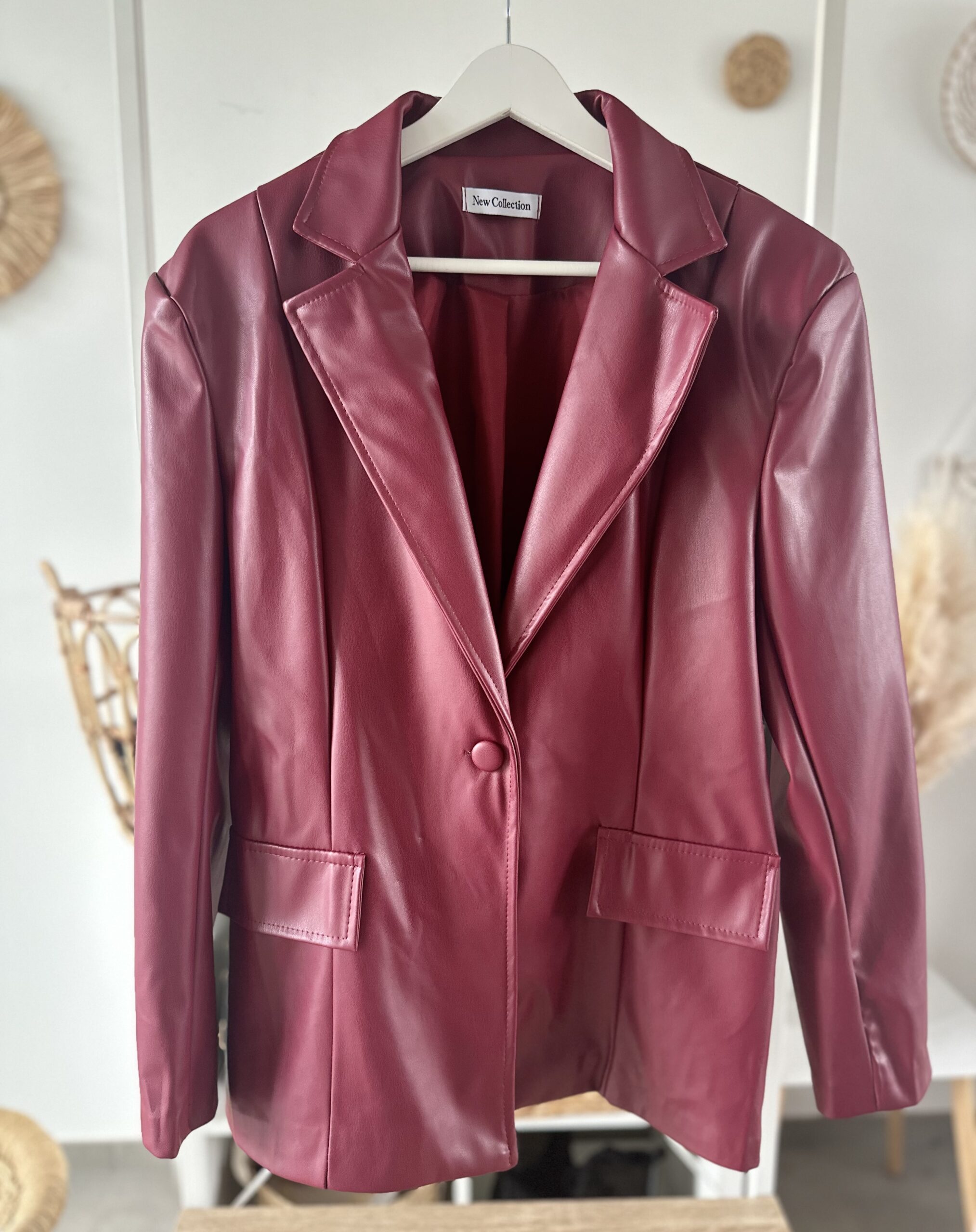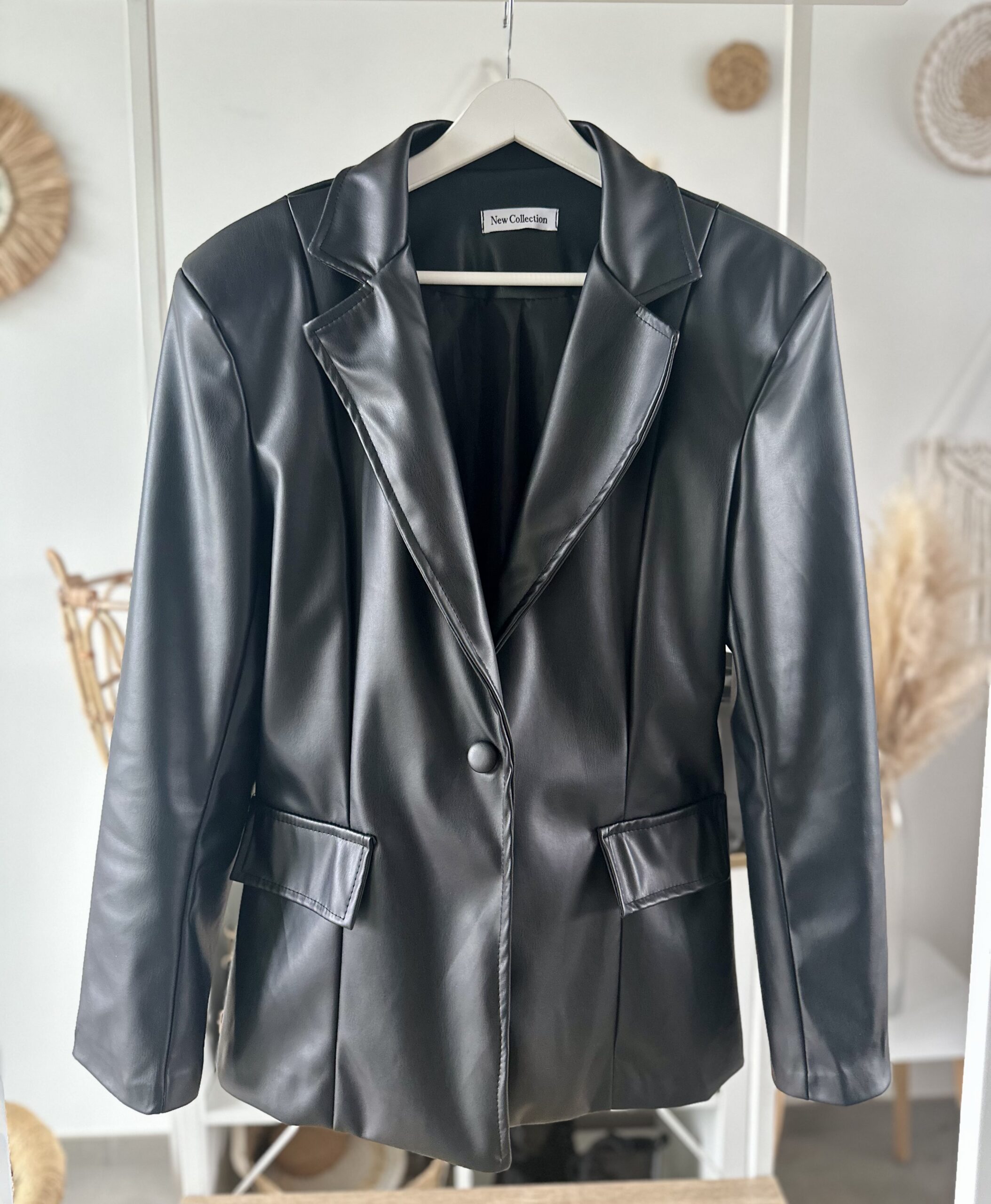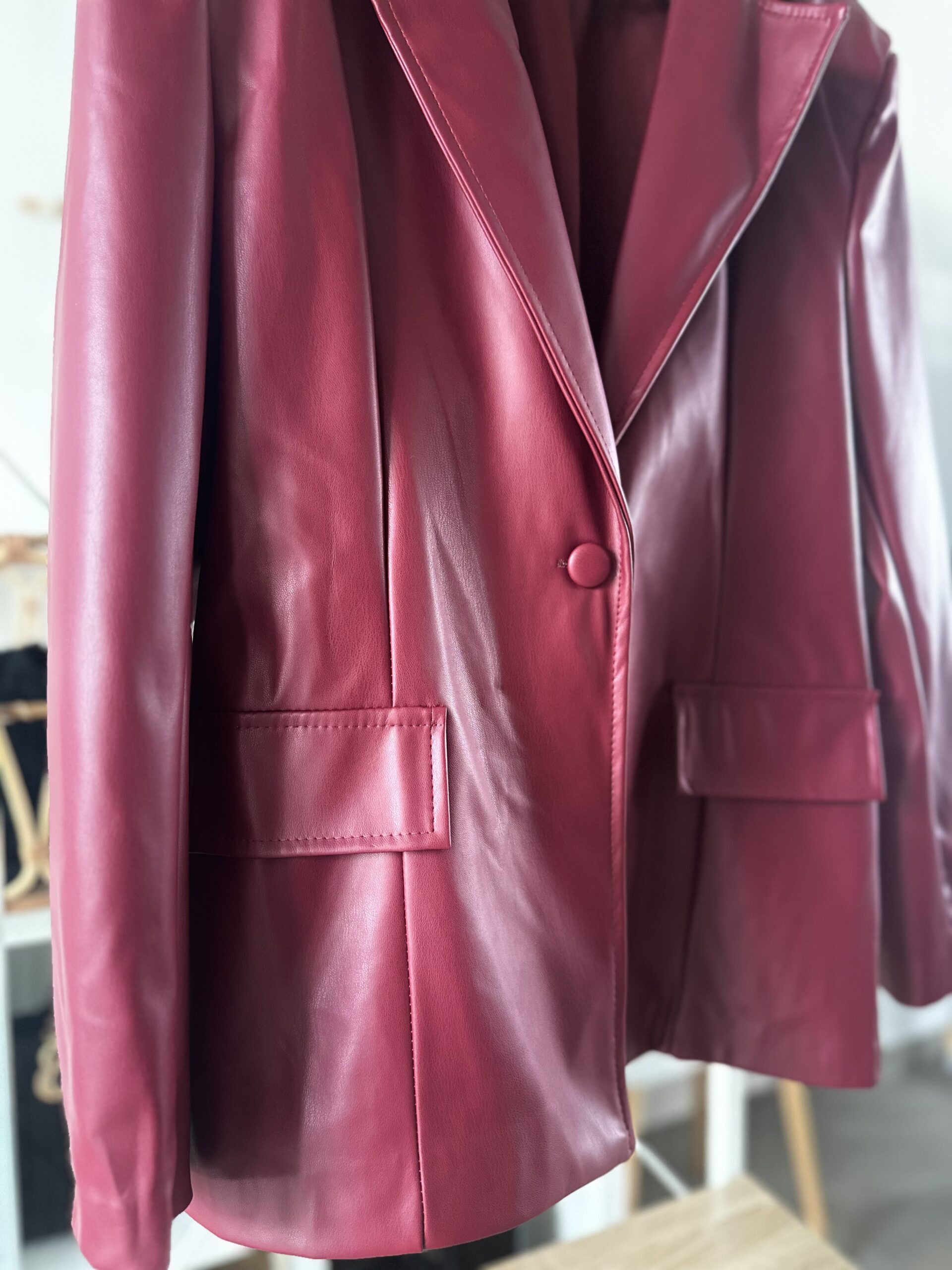 Dieser elegante Blazer in Lederoptik aus der Festive Kollektion von Kati verleiht jedem Outfit eine moderne, edle Note. Die strukturierte Form, das klassische Revers und der Knopfverschluss machen ihn zu einem vielseitigen Begleiter – ob festlich kombiniert über einem Kleid oder cool zu Jeans und Boots.