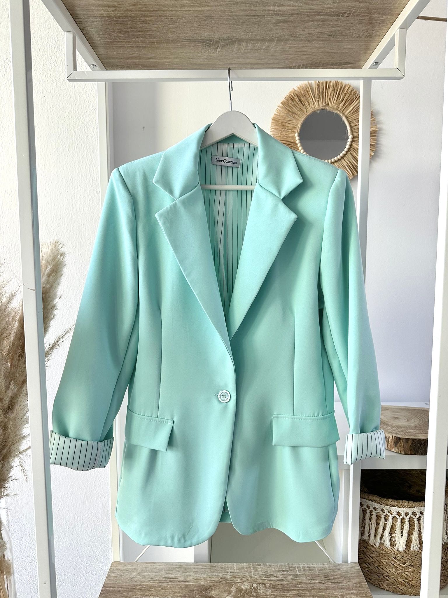 Dieser leichte Blazer bringt Farbe und Eleganz in deinen Look – perfekt für moderne Business-Outfits oder stilvolle Casual Kombinationen.
