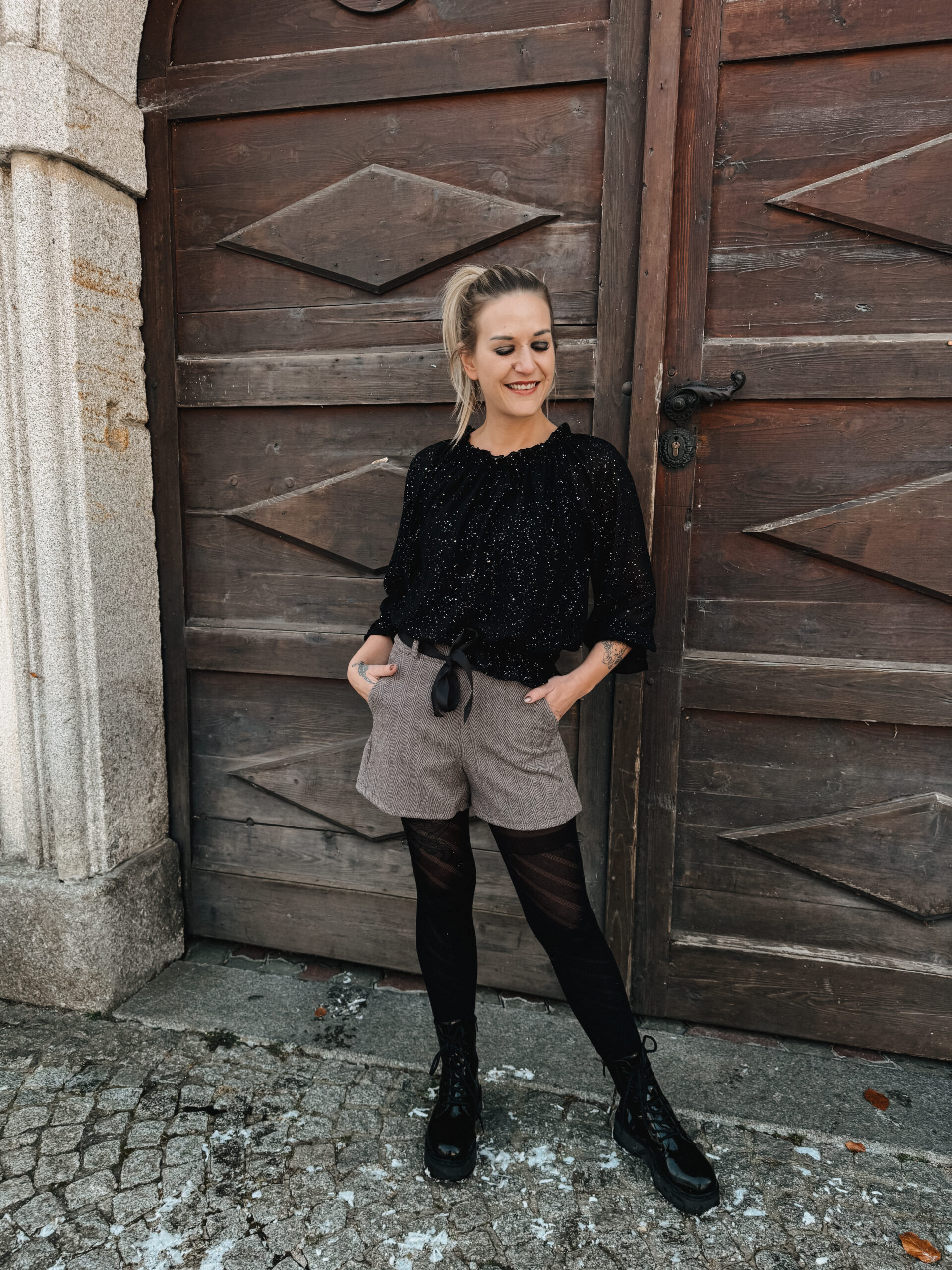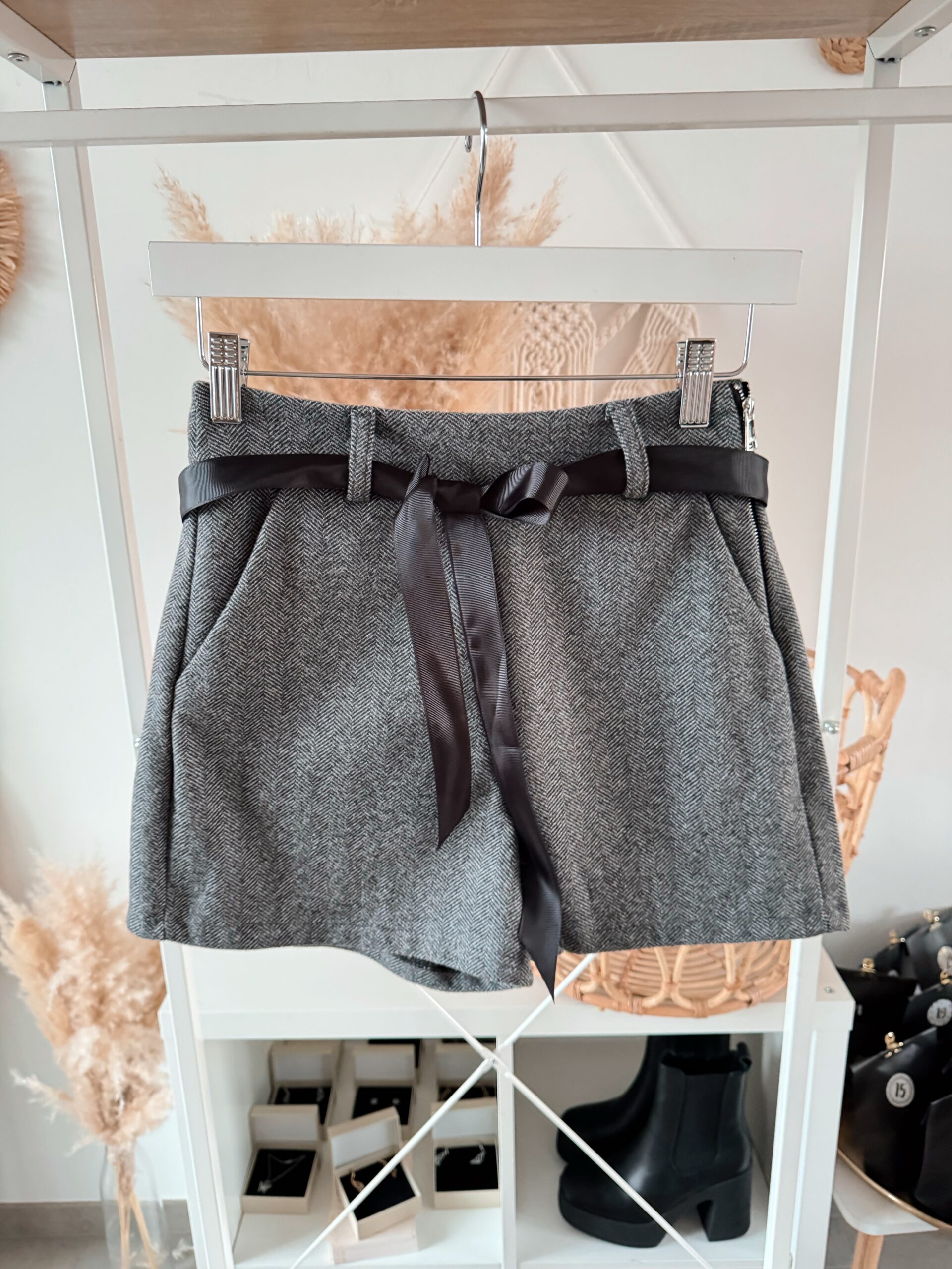 Modern, charmant und wunderbar kombinationsstark – diese Shorts im feinen Herringbone-Muster bringen frischen Chic in deine Winterlooks. Der elegante Stoffmix sorgt für eine schöne Struktur, während die glänzende Schleifenbindung dem Design einen femininen Touch verleiht.
